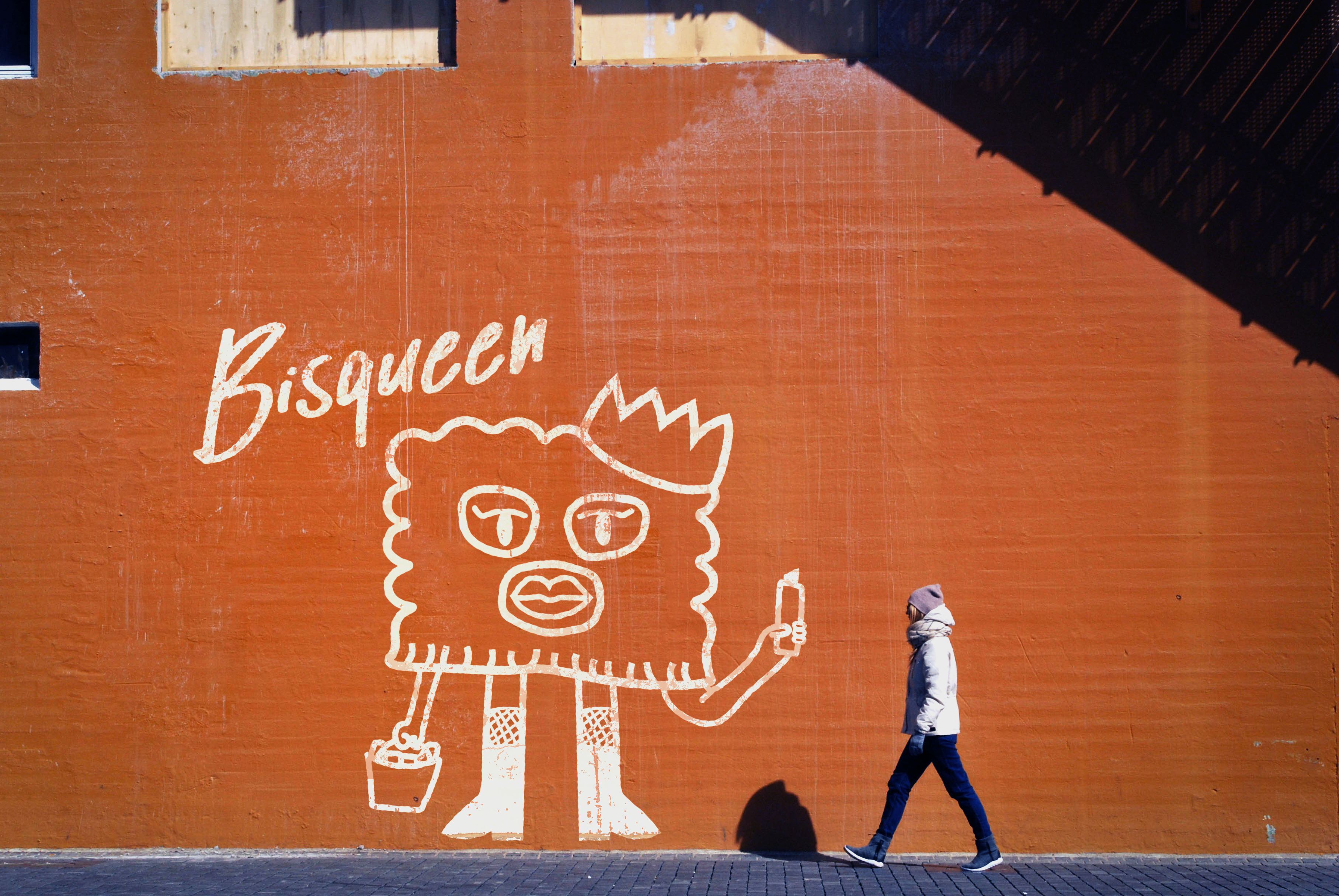 Pour cela j'ai voulu créer le personnage de la BisQueen par une mascotte représentant le biscuit historique de la marque.